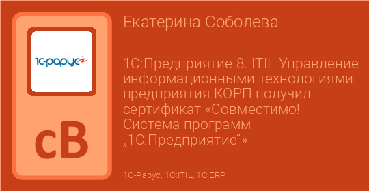 1С:Предприятие 8. ITIL Управление информационными технологиями предприятия КОРП получил сертификат «Совместимо! Система программ „1С:Предприятие“»