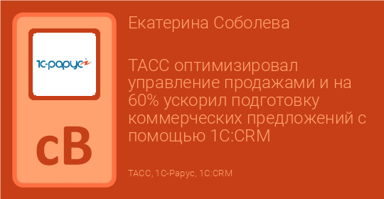ТАСС оптимизировал управление продажами и на 60% ускорил подготовку коммерческих предложений с помощью 1С:CRM