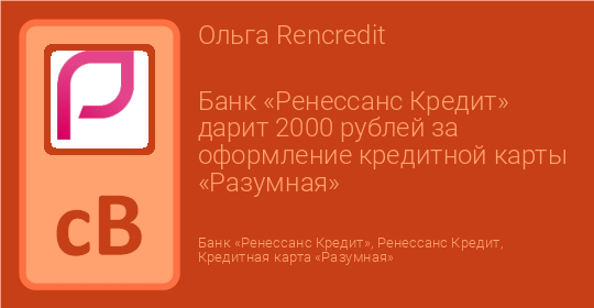 Банк «Ренессанс Кредит» дарит 2000 рублей за оформление кредитной карты «Разумная»