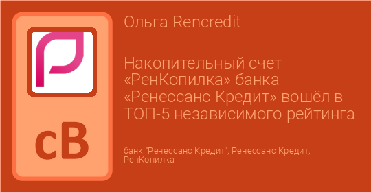 Накопительный счет «РенКопилка» банка «Ренессанс Кредит» вошёл в ТОП-5 независимого рейтинга