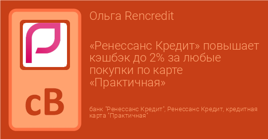 Банк «Ренессанс Кредит» повышает кэшбэк по кредитной карте «Практичная» до 2% за любые покупки.