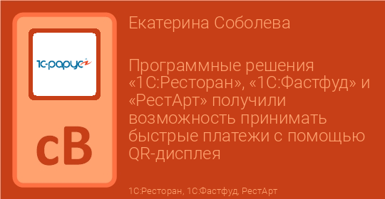 Программные решения «1С:Ресторан», «1С:Фастфуд» и «РестАрт» получили возможность принимать быстрые платежи с помощью QR‑дисплея