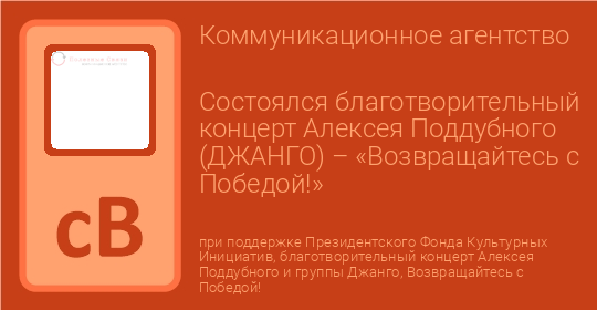 при поддержке Президентского Фонда Культурных Инициатив благотворительный концерт Алексея Поддубного и группы Джанго Возвращайтесь с Победой! Благотворительный концерт Алексея Поддубного (ДЖАНГО) – «Возвращайтесь с Победой!» ДЖАНГО