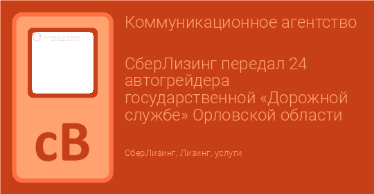 СберЛизинг передал 24 автогрейдера государственной «Дорожной службе» Орловской области