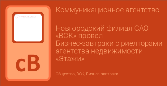Новгородский филиал САО «ВСК» провел Бизнес-завтраки с риелторами агентства недвижимости «Этажи»