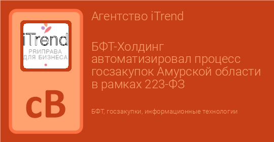 БФТ-Холдинг автоматизировал процесс госзакупок Амурской области в рамках 223-ФЗ