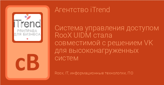 Cистема управления доступом RooX UIDM стала совместимой с решением VK для высоконагруженных систем