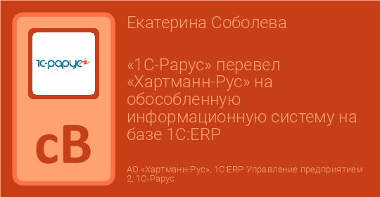 «1С-Рарус» перевел «Хартманн-Рус» на обособленную информационную систему на базе 1С:ERP