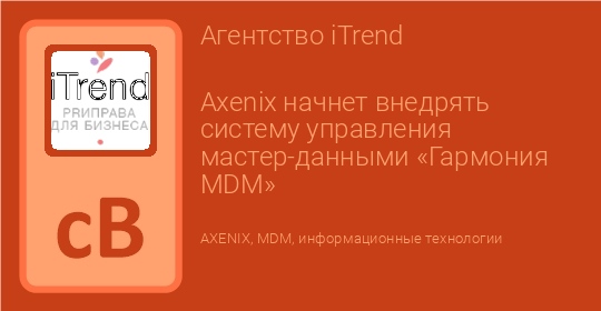 Консалтинговая технологическая компания Axenix займется продвижением системы управления мастер-данными и ведения нормативно-справочной информацией (НСИ) «Гармония MDM», а также будет использовать решение в своих проектах.