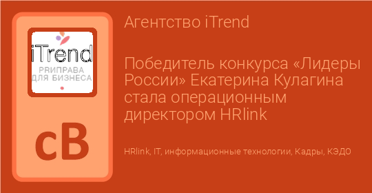 Победитель конкурса «Лидеры России» Екатерина Кулагина стала операционным директором HRlink
