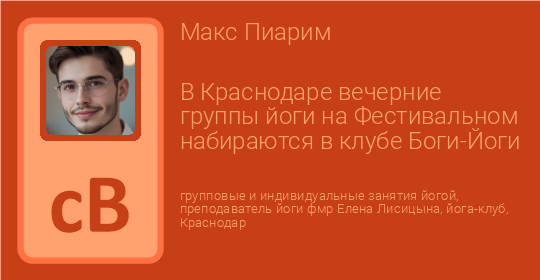 В Краснодаре вечерние группы йоги на Фестивальном набираются в клубе Боги-Йоги