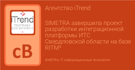 SIMETRA завершила проект разработки интеграционной платформы ИТС Свердловской области на базе RITM³