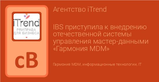 IBS приступила к внедрению отечественной системы управления мастер-данными «Гармония MDM»