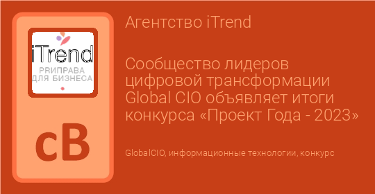Сообщество лидеров цифровой трансформации Global CIO объявляет итоги конкурса «Проект Года - 2023»