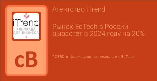 Компания "РОББО", российский производитель образовательной робототехники, оценивает рост рынка EdTech в России по итогам 2023 года в 25%. В 2024 году компания прогнозирует его увеличение на 20%.