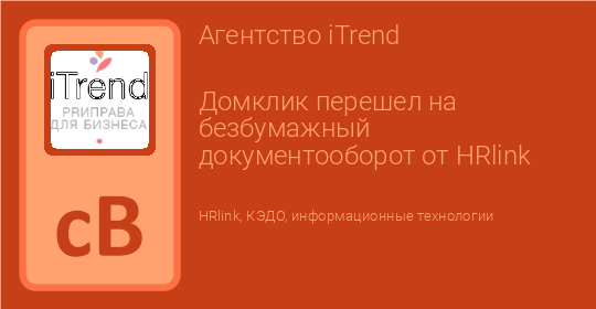 Онлайн-сервис Домклик перевел кадровый документооборот в электронный формат с помощью программного решения от HRlink. Половина сотрудников перешла на кадровый ЭДО в первый же месяц проекта. Сейчас сервис используют более 1000 человек.