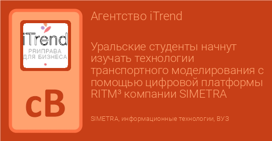 Уральские студенты начнут изучать технологии транспортного моделирования с помощью цифровой платформы RITM³ компании SIMETRA
