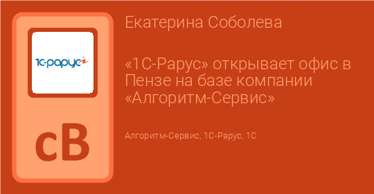 «1С‑Рарус» открывает офис в Пензе на базе компании «Алгоритм‑Сервис»