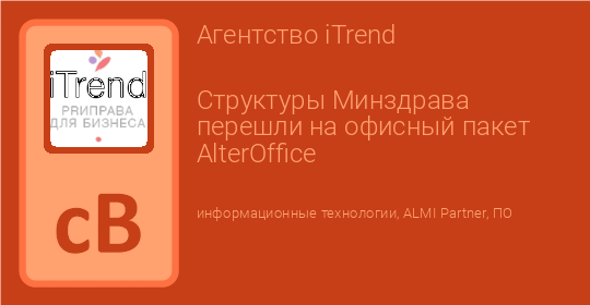 Часть подразделений Минздрава РФ внедрила российский офисный пакет AlterOffice. Программный продукт ALMI Partner, российского производителя общесистемного и прикладного ПО, поможет повысить производительность работы сотрудников за счет удобного и интуитивно понятного интерфейса и широкого функционала.