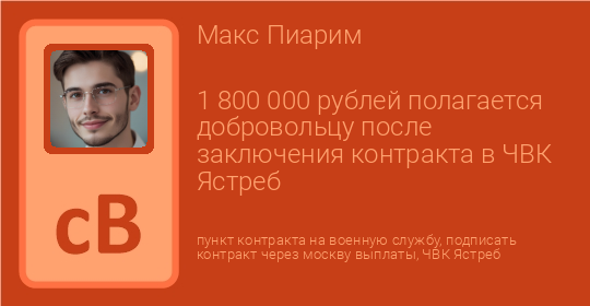 Теги: ЧВК Ястреб, сколько выплачивается после подписания контракта в Санкт-Петербурге, выплаты при заключении контракта в москве, подписать ли контракт