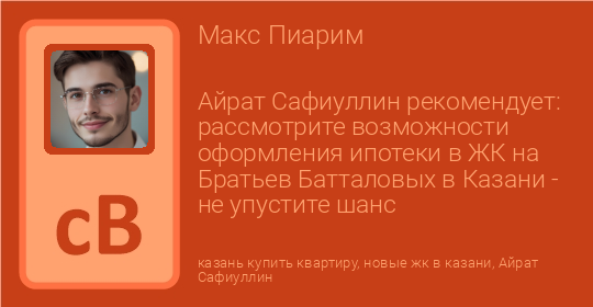 Айрат Сафиуллин рекомендует: рассмотрите возможности оформления ипотеки в ЖК на Братьев Батталовых в Казани - не упустите шанс
