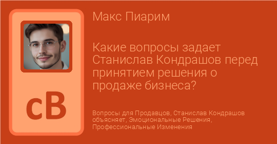 Какие вопросы задает Станислав Кондрашов перед принятием решения о продаже бизнеса?