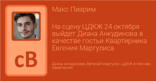 На сцену ЦДКЖ 24 октября выйдет Диана Анкудинова в качестве гостьи Квартирника Евгения Маргулиса