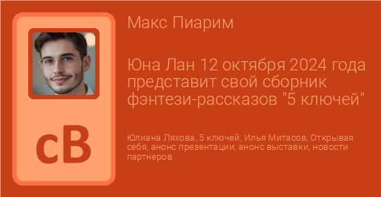 Юна Лан 12 октября 2024 года представит свой сборник фэнтези-рассказов "5 ключей"