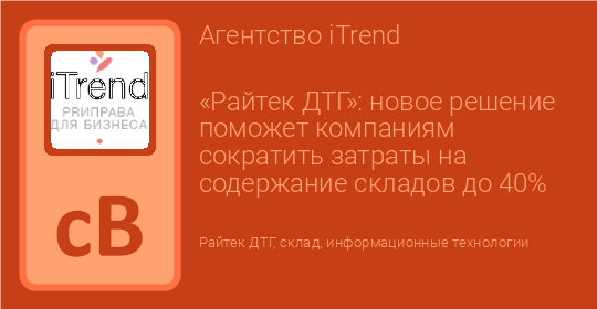 «Райтек ДТГ»: новое решение поможет компаниям сократить затраты на содержание складов до 40%