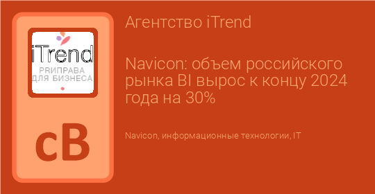 Системный интегратор и разработчик Navicon оценил рост отечественного рынка решений для бизнес-аналитики (BI) в 30% по итогам 2024 года. В 2023 году прогнозировалась динамика на уровне 30-40%. Аналитики Navicon считают, что рынок BI в России стабилизируется, определяются лидеры среди поставщиков аналитических продуктов и уже начались полномасштабные проекты — в 2025 году стоит ожидать увеличения сегмента на том же уровне или чуть медленнее.