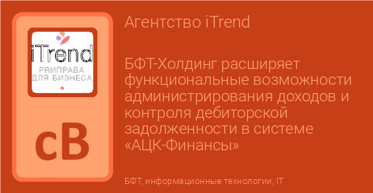 БФТ-Холдинг расширяет функциональные возможности администрирования доходов и контроля дебиторской задолженности в системе «АЦК-Финансы»