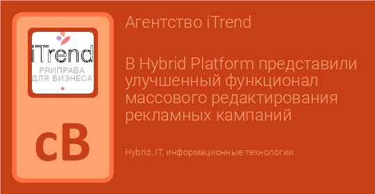 В Hybrid Platform представили улучшенный функционал массового редактирования рекламных кампаний