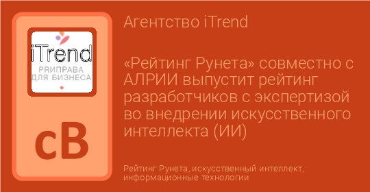 «Рейтинг Рунета» совместно с АЛРИИ выпустит рейтинг разработчиков с экспертизой во внедрении искусственного интеллекта (ИИ)