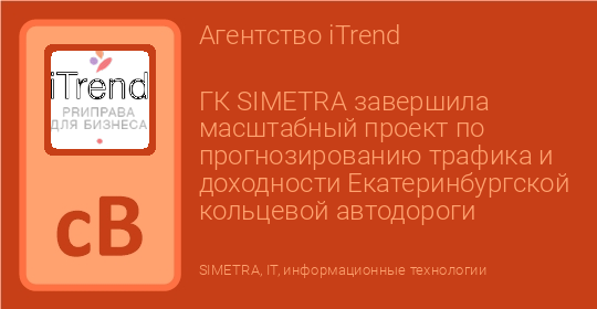 ГК SIMETRA завершила масштабный проект по прогнозированию трафика и доходности Екатеринбургской кольцевой автодороги