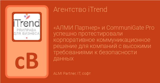 «АЛМИ Партнер» и CommuniGate Pro успешно протестировали корпоративное коммуникационное решение для компаний с высокими требованиями к безопасности данных