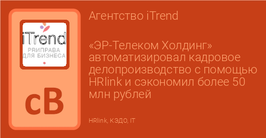 «ЭР-Телеком Холдинг» автоматизировал кадровое делопроизводство с помощью HRlink и сэкономил более 50 млн рублей
