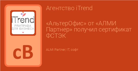 «АльтерОфис» от «АЛМИ Партнер» получил сертификат ФСТЭК