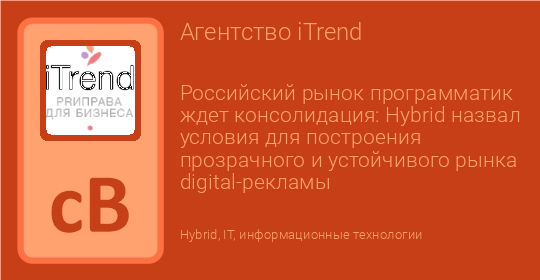 Российский рынок программатик ждет консолидация: Hybrid назвал условия для построения прозрачного и устойчивого рынка digital-рекламы