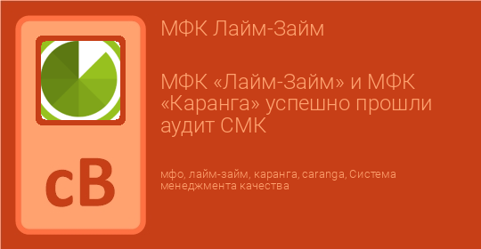 В сентябре 2025 года МФК «Лайм-Займ» и МФК «Каранга» (Caranga) успешно прошли аудит на соответствие требованиям международного стандарта системы менеджмента качества ISO 9001:2015. «Лайм-Займ» прошел процедуру ресертификации системы менеджмента качества, а Caranga — инспекционный аудит.