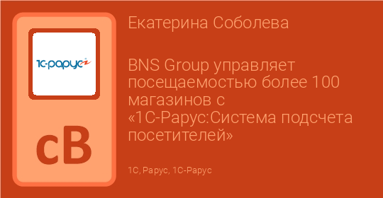 Более 100 магазинов BNS Group используют «1С-Рарус:Система подсчёта посетителей» для анализа посещаемости торговых залов и оценки конверсии продаж. Сервис от «1С-Рарус» уже 4 года помогает BNS Group выбирать успешные локации для размещения торговых точек, управлять портфелем брендов и улучшать клиентский сервис.