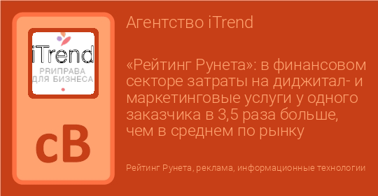 «Рейтинг Рунета»: в финансовом секторе затраты на диджитал- и маркетинговые услуги у одного заказчика в 3,5 раза больше, чем в среднем по рынку