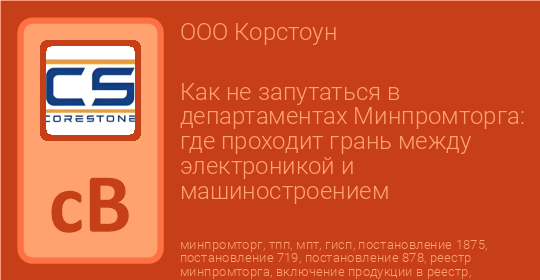 С 2025 года действует Постановление Правительства № 1875: теперь реестр промышленной продукции по ПП 719 стал универсальным. Отдельный реестр радиоэлектронной продукции по ПП 878 упразднён — электроника теперь включается по тем же правилам, что и машиностроение. Это сильно сдвинуло границы между департаментами.