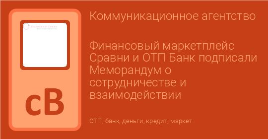 Финансовый маркетплейс Сравни и ОТП Банк подписали Меморандум о сотрудничестве и взаимодействии