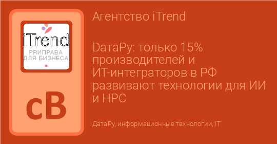 DатаРу: только 15% производителей и ИТ-интеграторов в РФ развивают технологии для ИИ и HPC