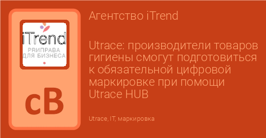 Utrace: производители товаров гигиены смогут подготовиться к обязательной цифровой маркировке при помощи Utrace HUB