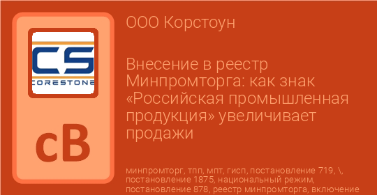 Ваши конкуренты уже используют его для продвижения, а госзаказчики отдают предпочтение товарам с этой маркировкой. Знак «Российская промышленная продукция» стал реальным конкурентным преимуществом для отечественных производителей. В этой статье эксперты «Корстоун» рассказывают, как извлечь из этого инструмента максимальную выгоду для вашего бизнеса.