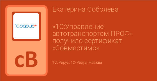 «1С:Управление автотранспортом ПРОФ» получило сертификат «Совместимо»