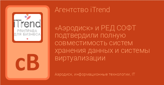 «Аэродиск» и РЕД СОФТ подтвердили полную совместимость систем хранения данных и системы виртуализации