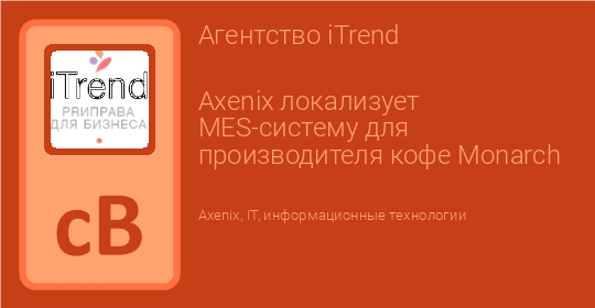 Консалтинговая технологическая компания Axenix завершила первый этап локализации MES для производителя кофе Monarch. В рамках проекта реализован ключевой функционал на платформе российского вендора «ИндаСофт», включающий работу с производственной нормативно-справочной информацией, управление заказами, маркировку продукции, а также интеграцию с корпоративной ERP системой и сервером печати маркировки.