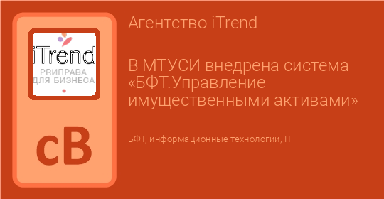 В МТУСИ внедрена система «БФТ.Управление имущественными активами»